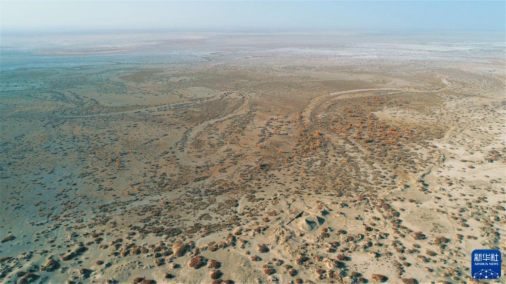 新疆克亞克庫都克烽燧遺址地處荒漠(2021年10月31日攝,無人機照片)。新華社發(胡興軍 攝)
