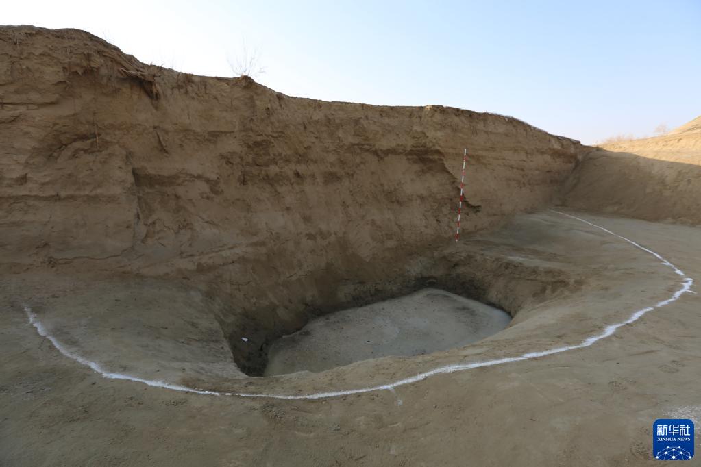 克亞克庫都克烽燧遺址內發掘的水塘(資料照片)。新華社發(胡興軍 攝)