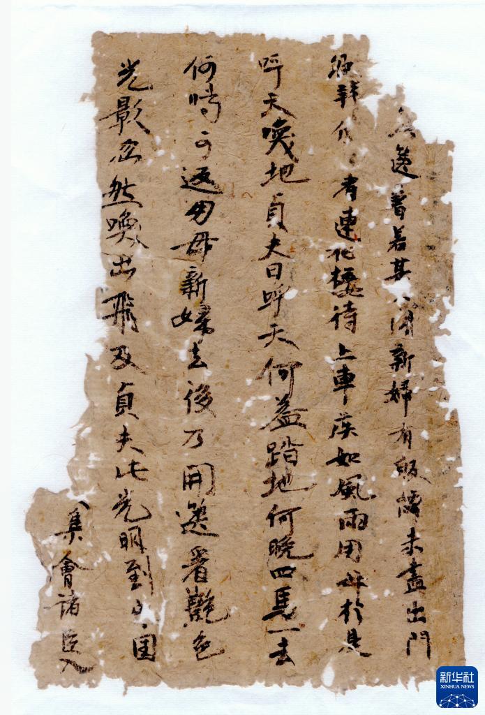 克亞克庫都克烽燧遺址出土的《韓朋賦》殘片(資料照片)。新華社發(新疆文物考古研究所供圖)