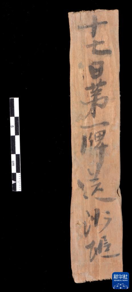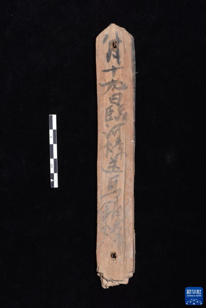 克亞克庫都克烽燧遺址出土的木簡(資料照片)。新華社發(新疆文物考古研究所供圖)