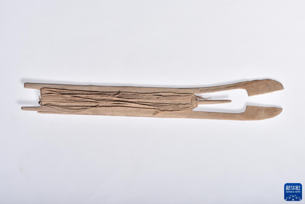 克亞克庫都克烽燧遺址出土的木梭(資料照片)。新華社發(新疆文物考古研究所供圖)