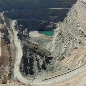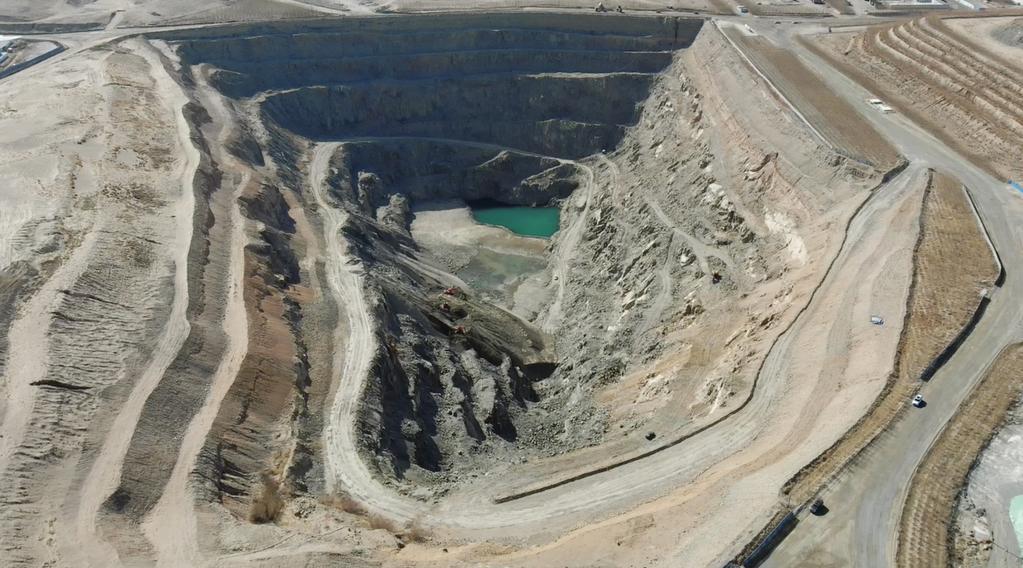 生金礦業公司公忽洞鐵礦深達97米的越界采坑(無人機照片)。新華社記者 恩浩 2022年3月27日攝