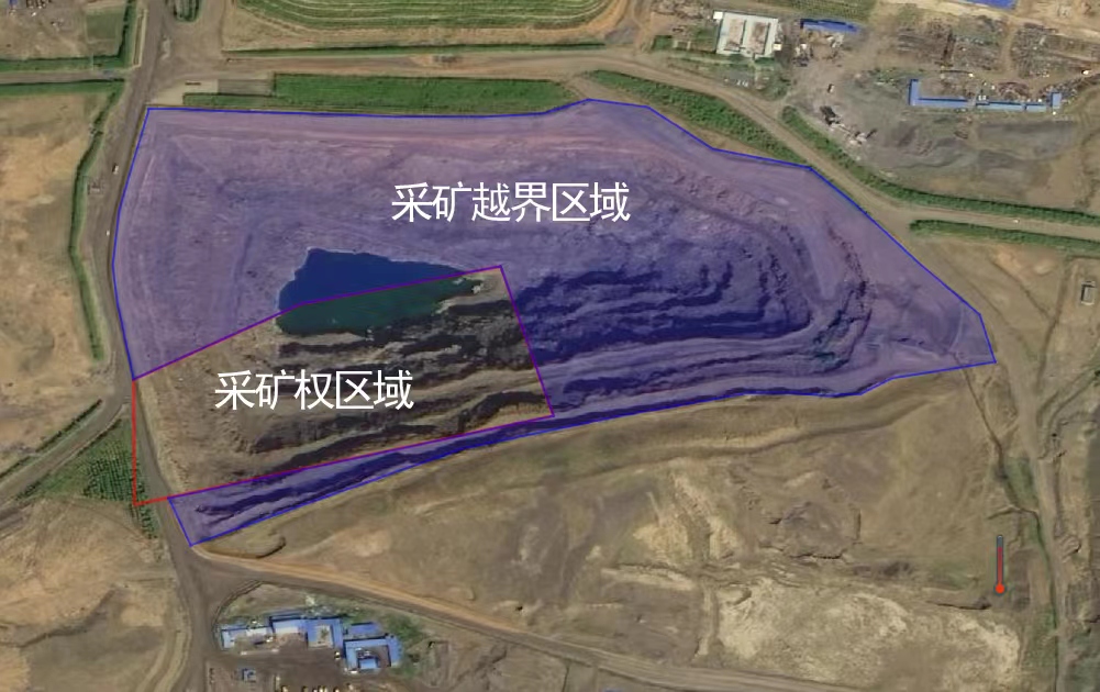 2021年8月31日衛星拍攝的生金礦業公司公忽洞鐵礦越界開采情況(衛星圖片)。新華社發(中央第三生態環境保護督察組供圖)