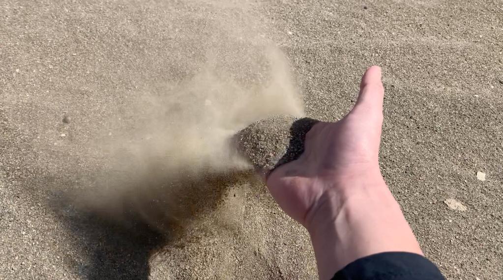 在烏拉特前旗巴音溫都爾嘎查,一處已生態修復的礦區幾乎看不到植被。陽光下閃著金屬光澤的沙粒在記者手中隨風飄揚。新華社記者 王靖 攝