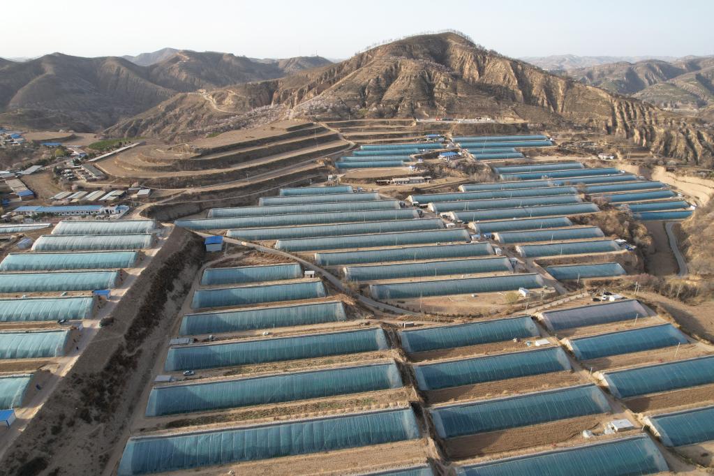 延安市安塞區化子坪鎮張岔村的大棚種植基地(無人機照片)。新華社記者邵瑞 攝