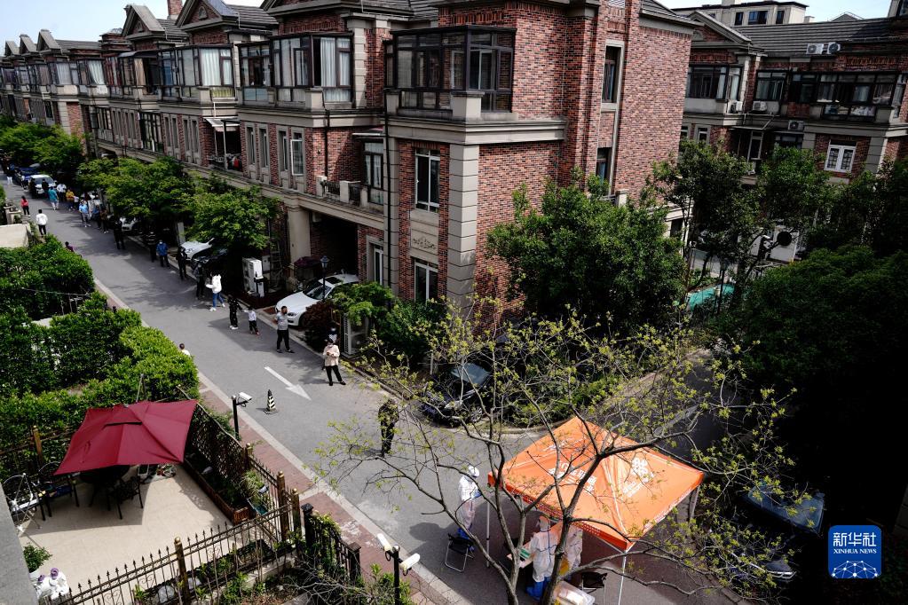 4月9日,上海松江區洞涇鎮社區衛生服務中心醫務人員在中海悅庭小區進行核酸采樣。新華社記者 張建松 攝