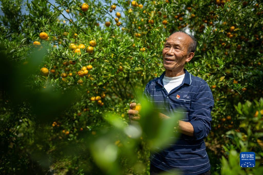 劉超仁在云南西疇縣興街鎮江龍村查看待收獲的柑橘(3月26日攝)。新華社記者江文耀攝
