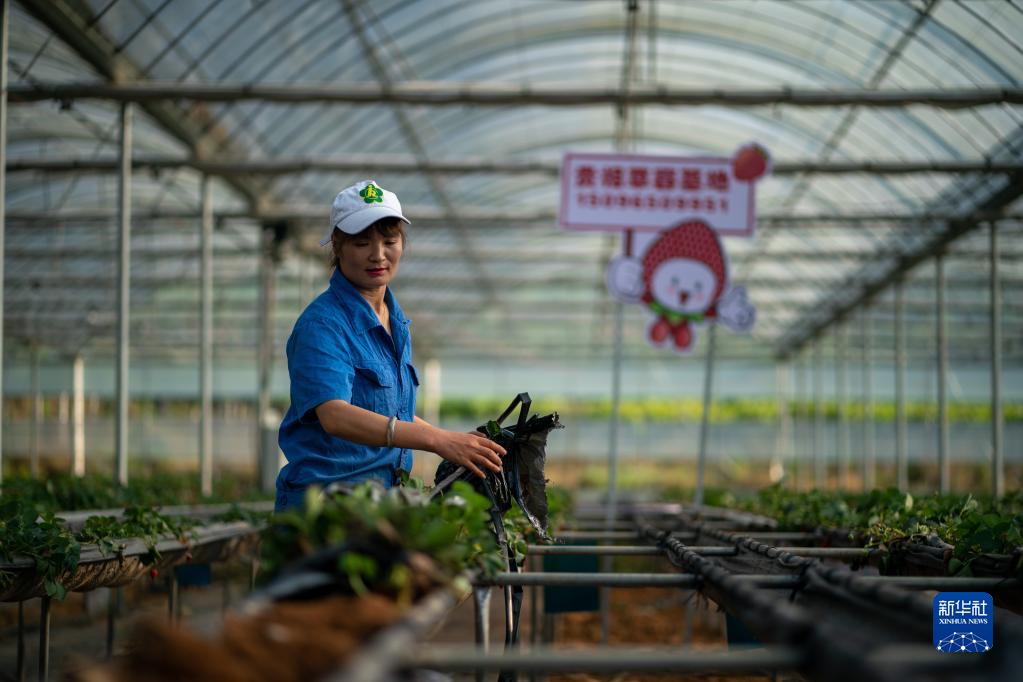 在云南西疇縣,“草莓媽媽”張貴相在她的草莓基地里勞作(3月26日攝)。新華社記者江文耀攝