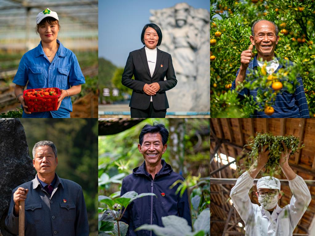 云南省文山壯族苗族自治州西疇縣奮戰在鄉村振興新征程上的平凡身影,他們分別是李華明(左下)、劉超仁(右上)、程敦儒(中下)、謝成芬(中上)、張貴相(左上)、杜岑(右下)(拼版照片)。新華社記者江文耀攝