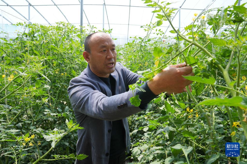 山東省濟南市長清區孝里街道居民王守華利用流轉土地建起大棚,發展高效農業(4月8日攝)。新華社記者朱崢攝