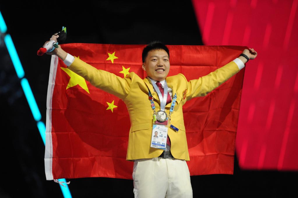 2019年8月,楊應政代表中國隊參加第45屆世界技能大賽“管道與制暖”項目的比賽奪得銀牌。受訪者供圖