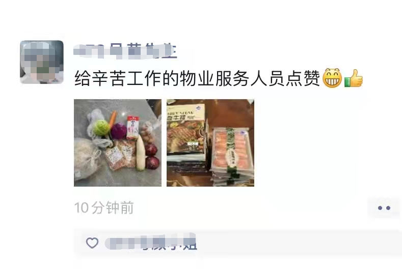 “居民們送來的什么都有,蔬菜、水果,半成品的魚香肉絲、蹄髈……太多了,我都數不清了?!?/strong>小區物業經理黃海華說。