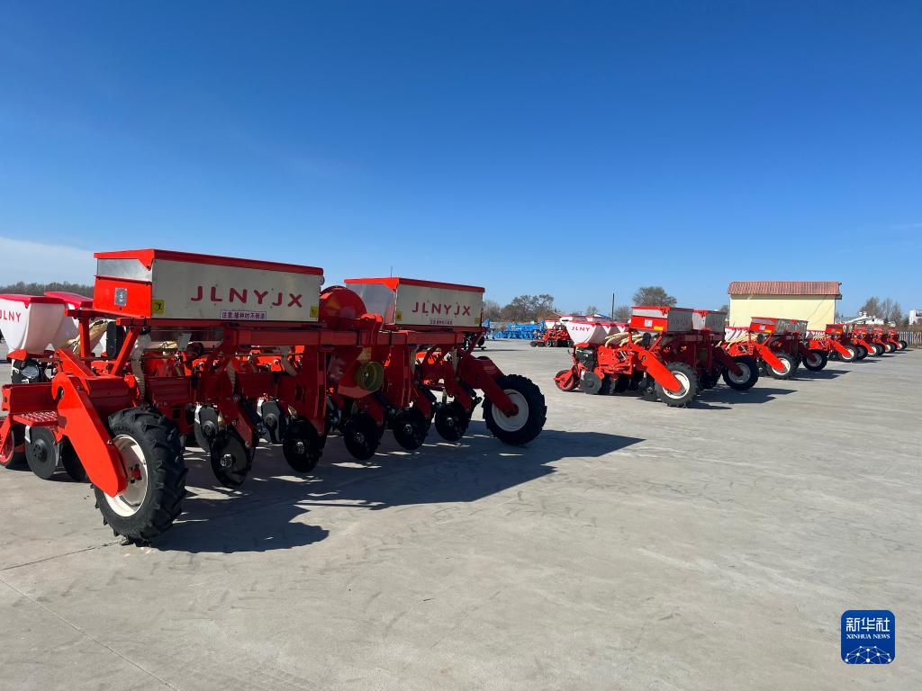 北大荒集團軍川農場有限公司新購進的氣吸式精量播種機(4月12日攝)。新華社發