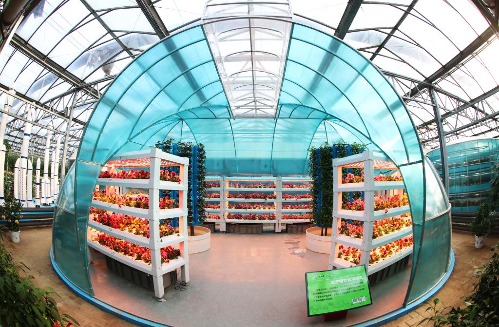 走入菜博會的十號館,就如同走進了一條綠色科技長廊,物聯網管理系統、智慧型植物工廠、太陽能導光和光纖照明種植等各類“新鮮科技”應有盡有。在展館北側,有一個“太空種植園”,這里搭建了兩個“太空艙”,使用“太空模型栽培模式”來模擬宇宙中的環境種蔬菜。這是今年館內的新亮點。