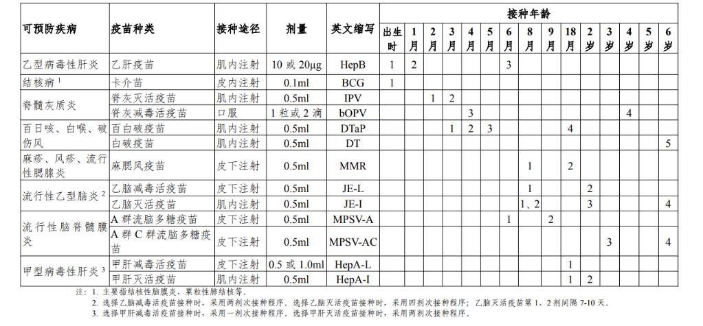 國家免疫規劃疫苗兒童免疫程序表(2021年版)(圖片來源:中國疾病預防控制中心)