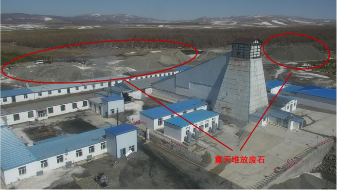 現場督察看到,大量尾礦和廢石露天堆放,未采取防雨、防揚塵、防流失措施,污染較為突出。