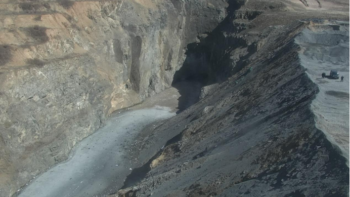 2022年4月3日,督察組使用無人機拍攝發現,黃崗礦業公司Ⅱ1區露天采場生態修復不到位。督察組供圖