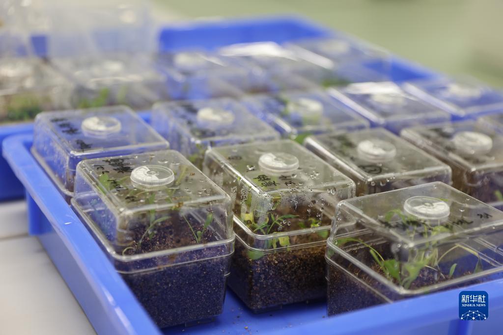 這是4月10日拍攝的三亞崖州灣科技城種子實驗室的植物幼苗。新華社記者 張麗蕓 攝