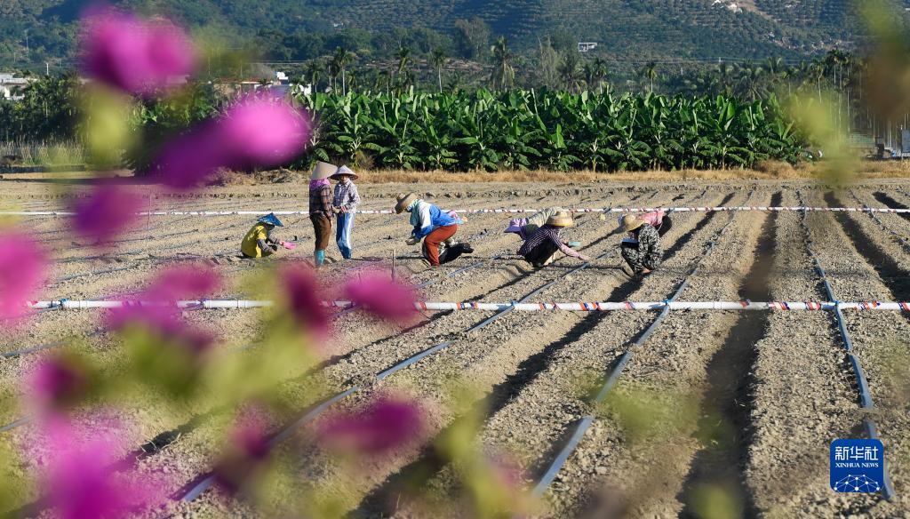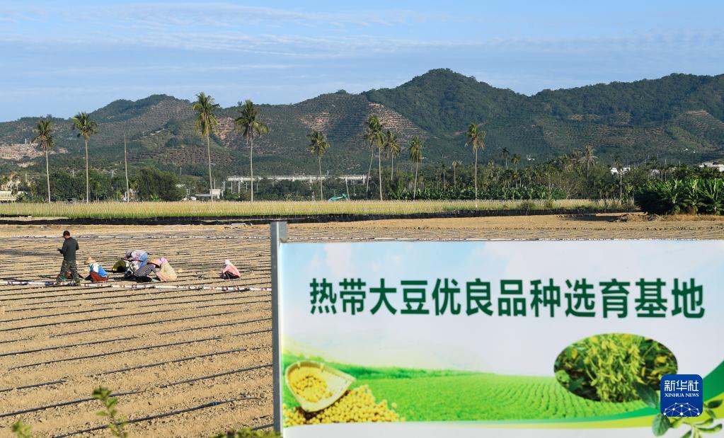 在三亞市崖州區城西村壩頭南繁公共試驗基地,村民在搶播大豆(2021年11月25日攝)。新華社記者 楊冠宇 攝