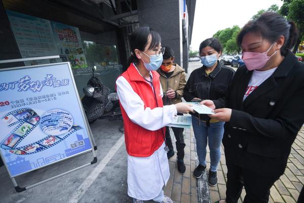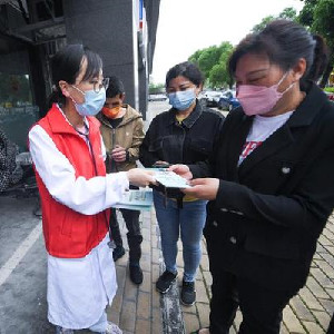 4月28日,在浙江湖州龍泉街道祥和社區幸福鄰里中心,龍泉街道社區衛生服務中心的醫生志愿者向人們發放職業病防治法宣傳手冊,普及健康知識。新華社記者 徐昱 攝