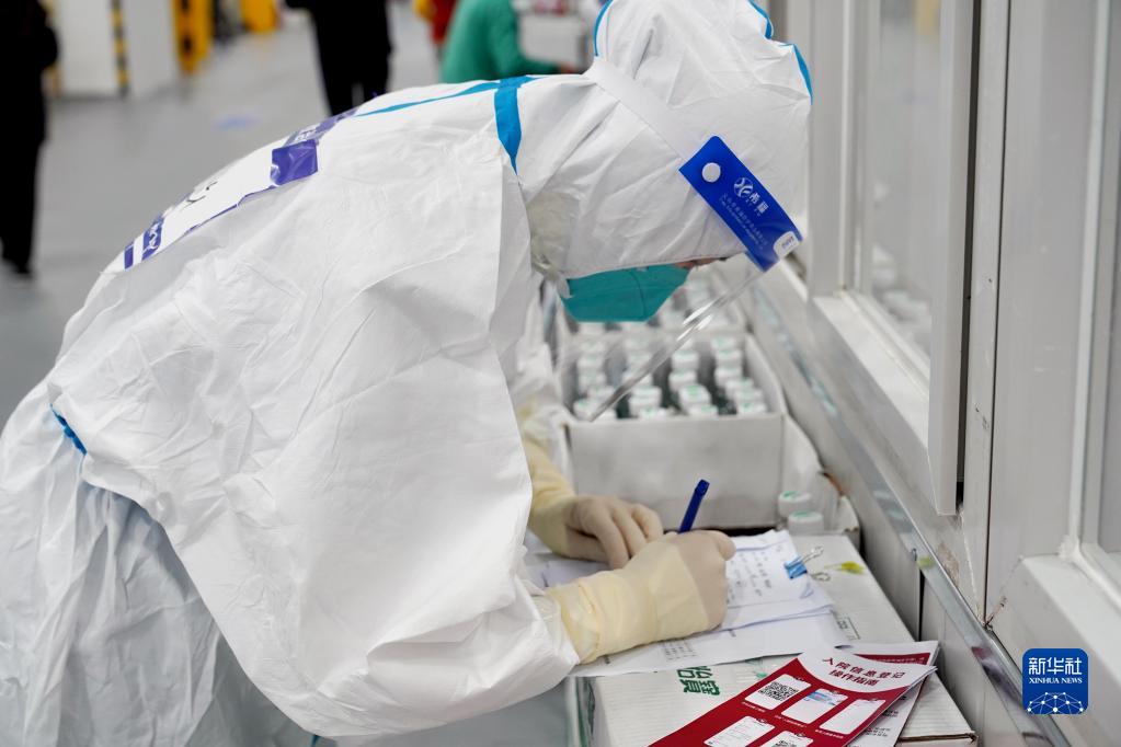 4月30日,在北京市大興區亦莊鎮一核酸采樣點,醫護人員為市民進行核酸采樣。新華社記者 彭子洋 攝