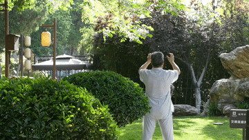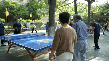 老漢在比賽間隙熟練地舉起一瓶啤酒