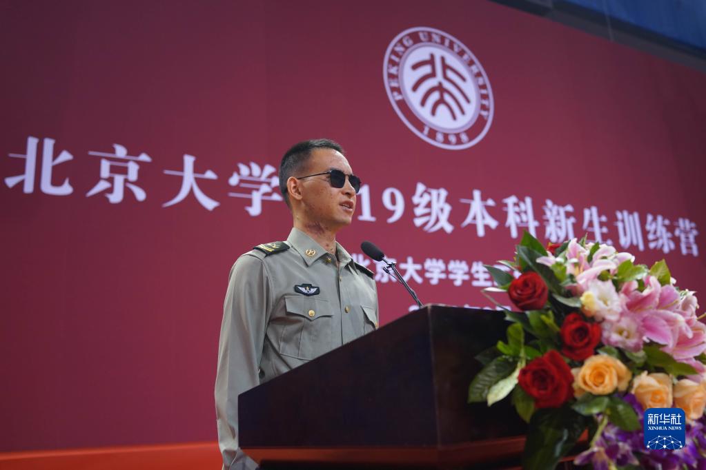 “排雷英雄戰士”杜富國在北京大學作先進事跡報告(2019年9月3日攝)。新華社記者 李清華 攝