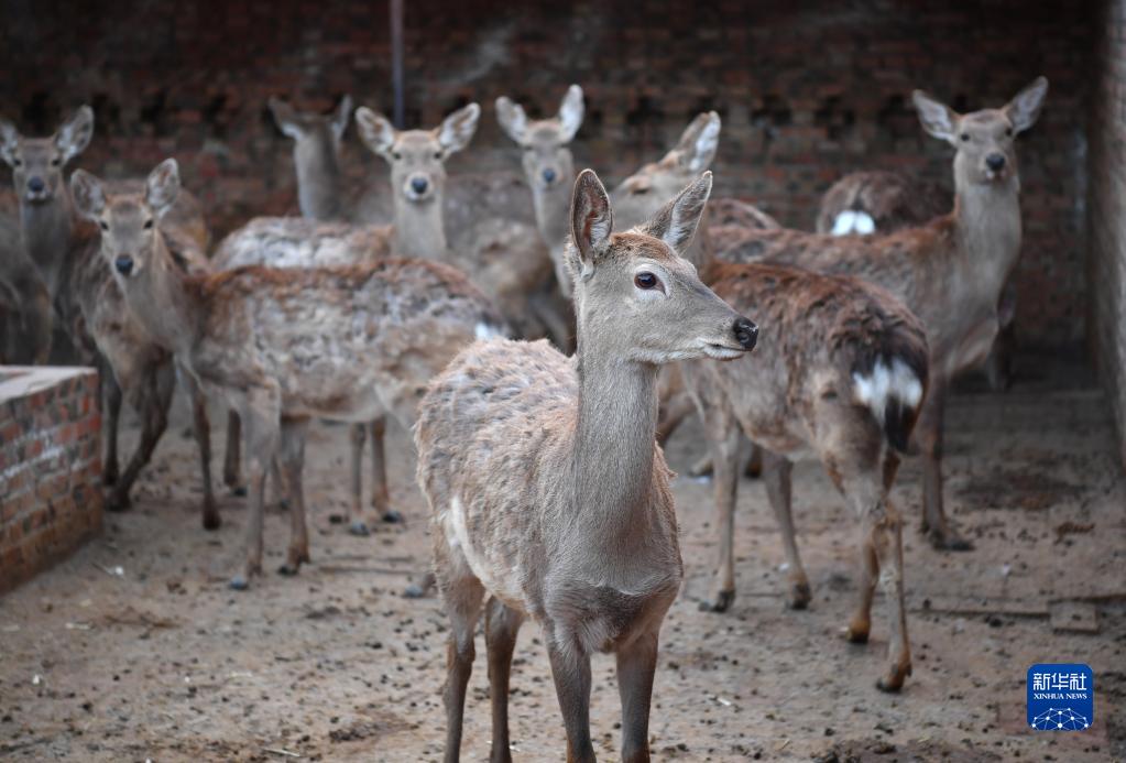這是趙洋洋在延安市安塞區鐮刀灣鎮羅居村養殖場內養殖的梅花鹿(3月29日攝)。新華社記者 邵瑞 攝