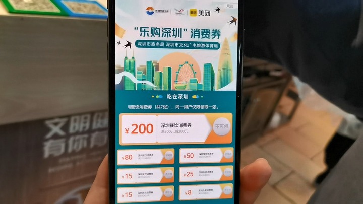 據了解,深圳自“五一”起,通過美團、京東等平臺陸續發放5億元消費券,涉及購物、餐飲、文體旅游、數字人民幣紅包等方面。