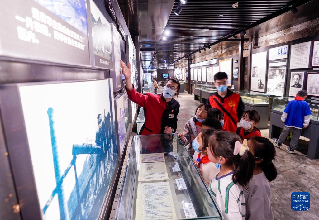 在重慶九龍坡區重慶建川博物館,30名來自城口縣的留守兒童、困難家庭青少年在共青團青年志愿者的陪伴下參觀游覽(2021年2月24日攝)。新華社記者 劉潺 攝