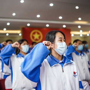 4月28日,貴陽市烏當中學新團員進行入團宣誓。新華社記者 陶亮 攝