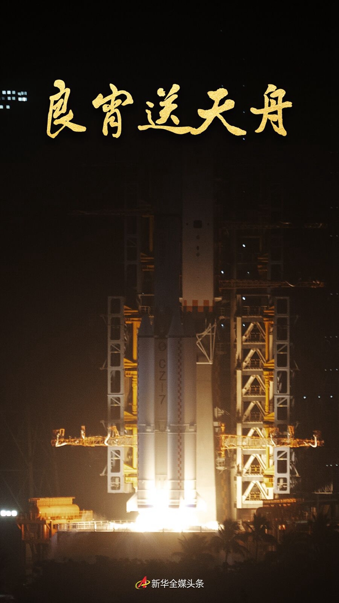 新華社海南文昌5月10日電 題:良宵送天舟——天舟四號貨運飛船飛天記