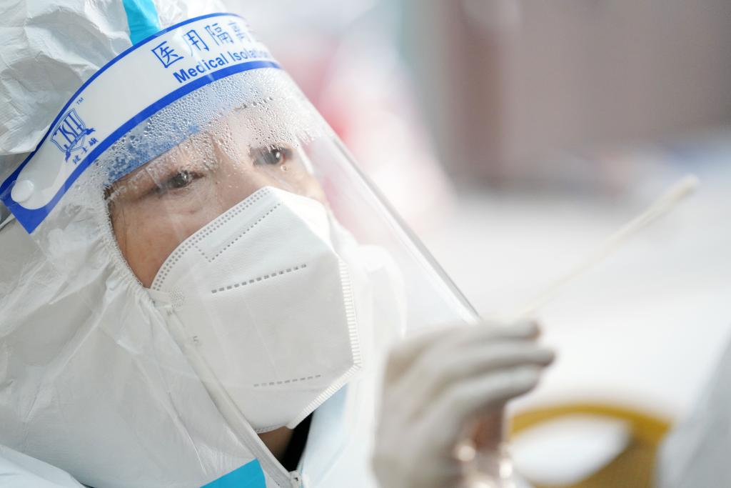 3月26日,在哈爾濱市香坊區一核酸檢測點,醫務人員為市民進行核酸采樣。新華社記者王建威 攝