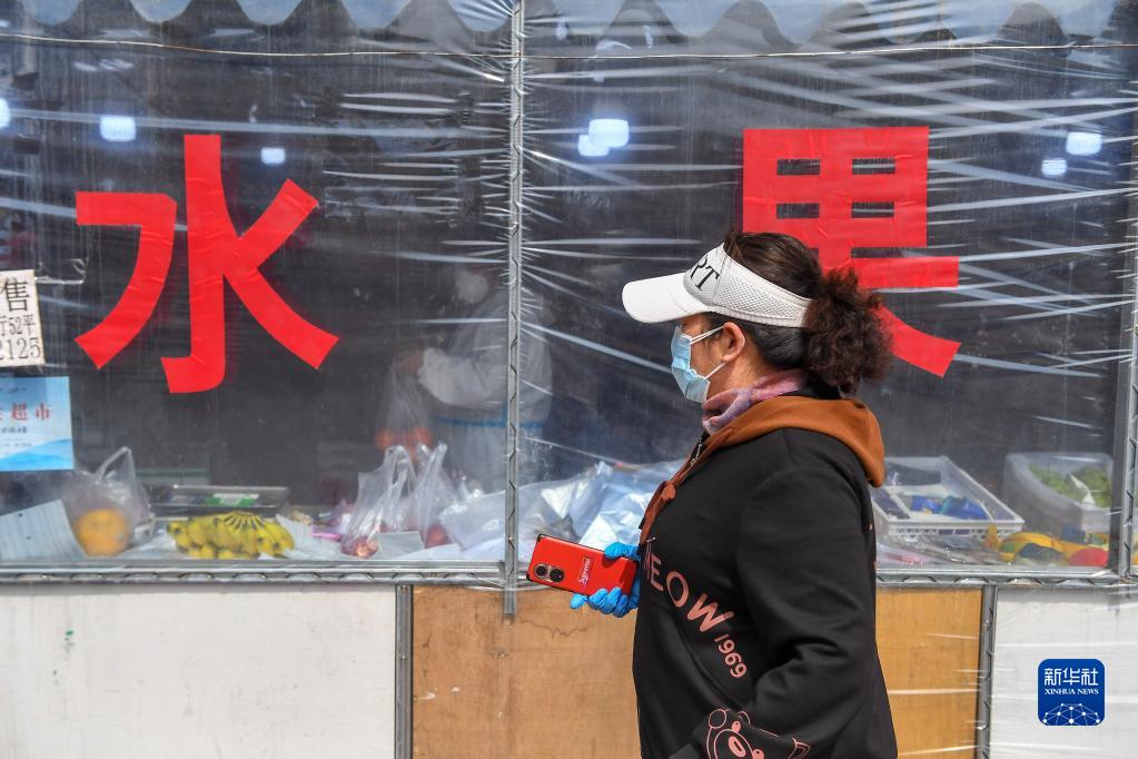 4月25日,在吉林市昌邑區新建街道,居民在保供超市購買商品。新華社記者 張楠 攝