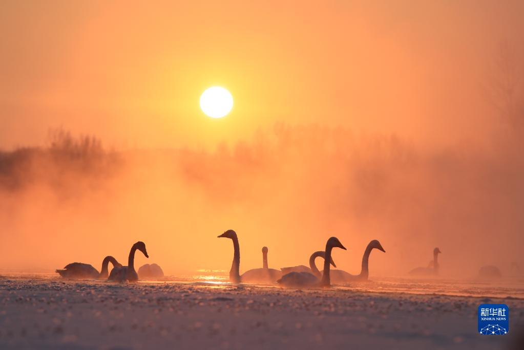 這是在遼寧省朝陽市拍攝的越冬天鵝(1月19日攝)。新華社發