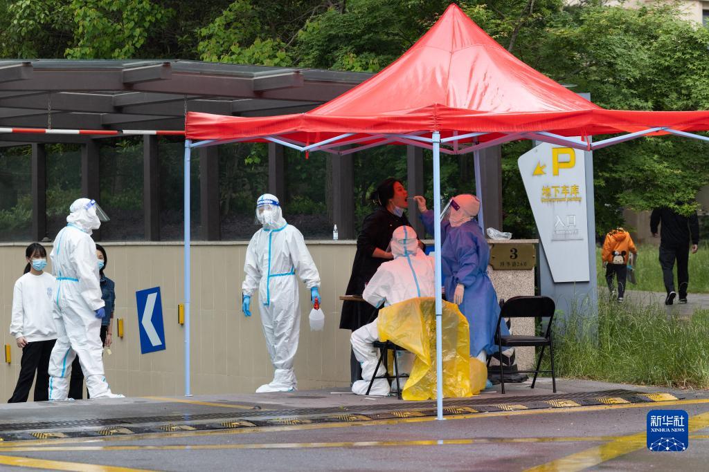 5月11日,在上海浦東新區北蔡鎮乾景雅園小區,居民做核酸采樣。新華社記者 金立旺 攝