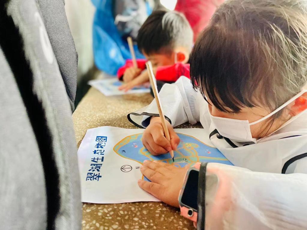 2022年3月17日,在云南省昆明市翠湖公園,參加科普活動的孩子通過學習到的生態及生物知識,繪制翠湖生態地圖。(受訪者供圖)