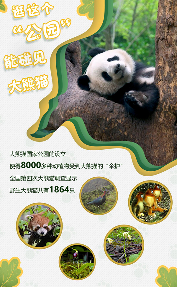 2016年12月,我國通過《大熊貓國家公園體制試點方案》。2021年10月12日,大熊貓國家公園正式設立,地跨川陜甘三省,總面積約2.7萬平方公里。