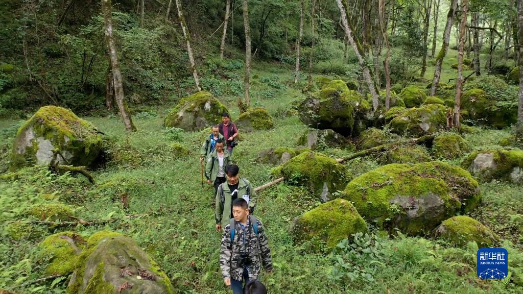 工作人員在大熊貓國家公園唐家河片區內開展巡護(資料照片)。新華社發