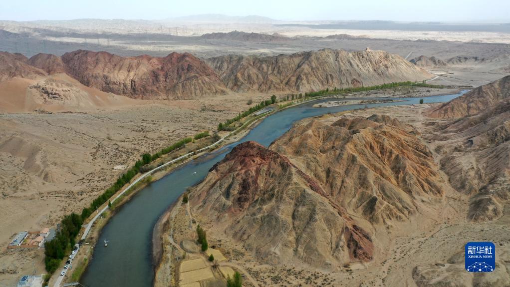 這是甘肅省張掖市甘州區境內的黑河弱水灣(4月14日攝,無人機照片)。新華社記者 陳斌 攝