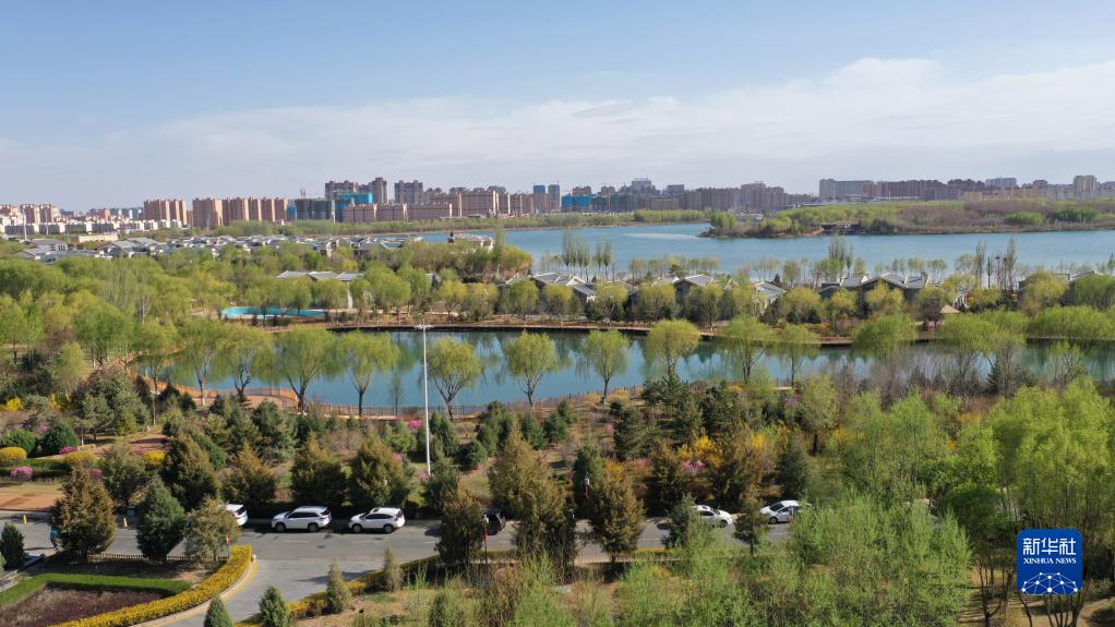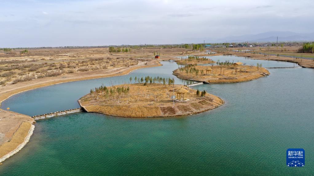 這是甘肅省張掖市甘州區境內的蘆水灣旅游度假區(4月12日攝,無人機照片)。新華社記者 陳斌 攝