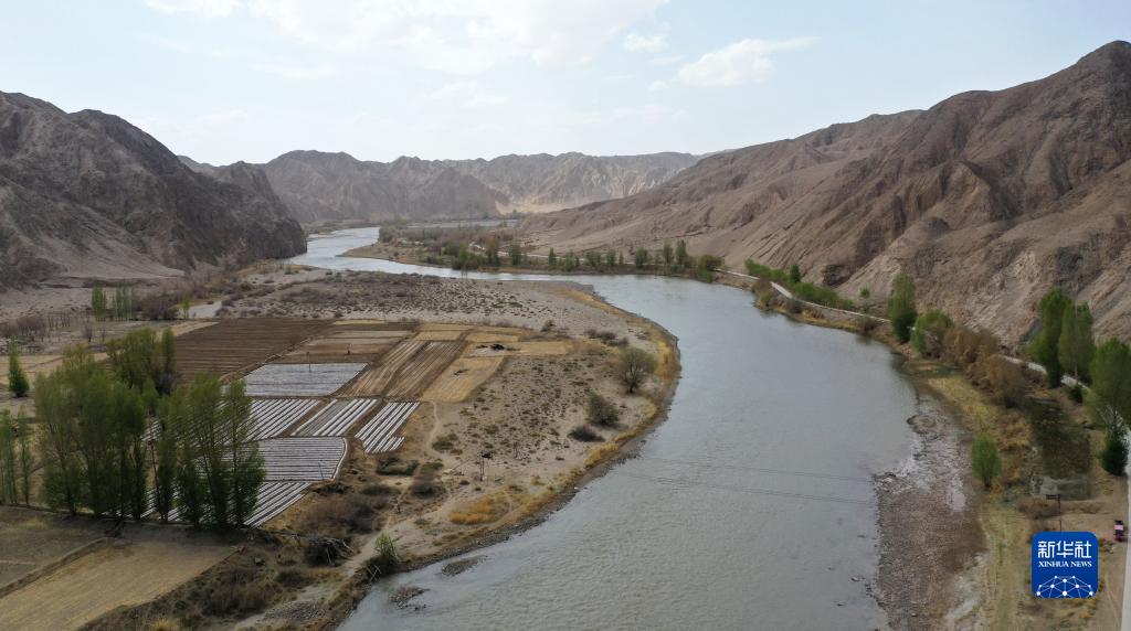 這是位于張掖市高臺縣境內的黑河正義峽(4月15日攝,無人機照片)。新華社記者 陳斌 攝