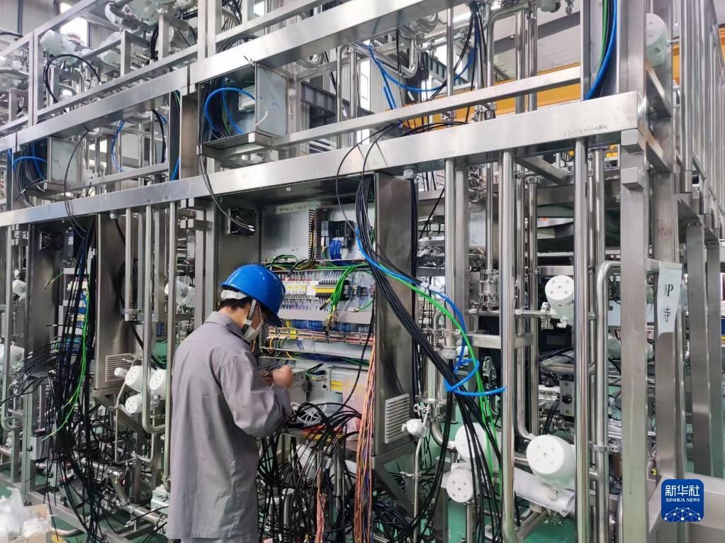 5月14日,工人在位于上海市金山區的上海東富龍制藥設備制造有限公司廠區內作業。新華社發