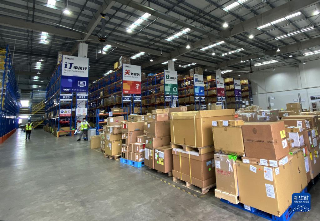 5月20日拍攝的上海泓明供應鏈分撥中心一角。這里輪轉著來自美國、日本等十幾個國家和地區的進口集成電路零部件。新華社記者 周琳 攝