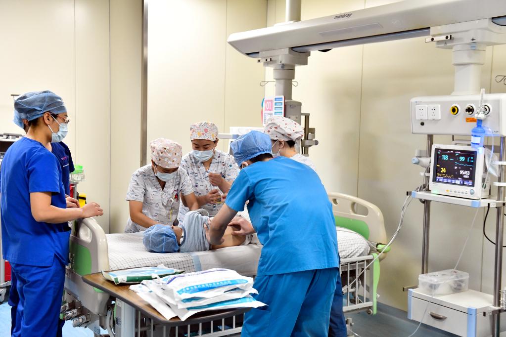1月1日,在山東省棗莊市婦幼保健院兒童ICU病房,醫護人員準備為4歲的脊髓性肌萎縮癥患兒注射靶向治療藥物諾西那生鈉。(新華社記者郭緒雷 攝)