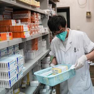 5月22日,在北京市豐臺區盧溝橋社區衛生服務中心,工作人員在為患者配藥。(新華社記者彭子洋 攝)