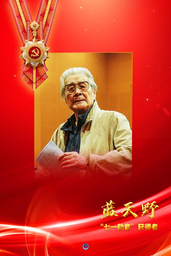 2021年6月29日,在人民大會堂舉行的“七一勛章”頒授儀式上,94歲的藍天野作為中國戲劇界唯一入選者,獲頒“七一勛章”。