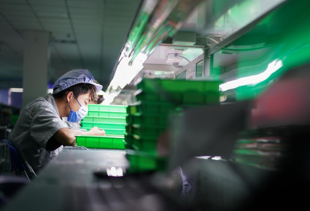 6月9日,江蘇精研科技股份有限公司工人在車間忙碌。(新華社記者季春鵬 攝)