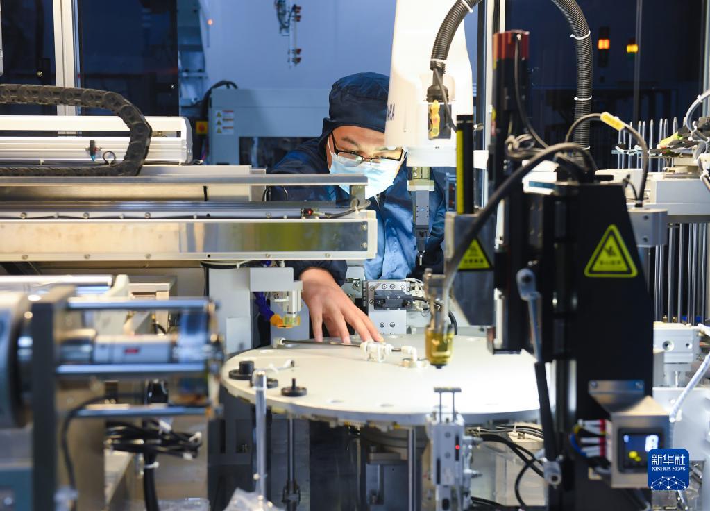 6月15日,在浙江省臺州市仙居縣一家醫療器械公司的生產車間,工作人員在調試生產線上的一套醫學實驗室設備。新華社記者 翁忻旸 攝