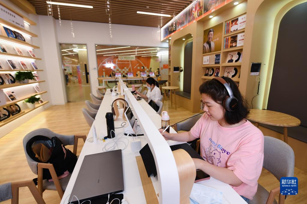 6月2日,在浙江省杭州市余杭區葛巷未來社區文化家園,居民在有聲圖書館內學習。新華社記者 翁忻旸 攝